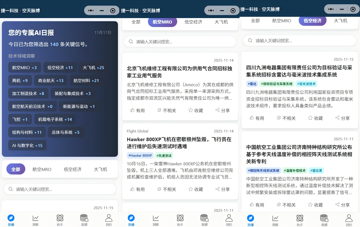 活動現(xiàn)場還深度演示了捷一科技首個AI智能數(shù)據(jù)信息洞察系統(tǒng)“空天脈搏”小程序,該系統(tǒng)憑借其高度直觀、實(shí)時響應(yīng)的特點(diǎn),獲得了與會嘉賓的廣泛關(guān)注。
